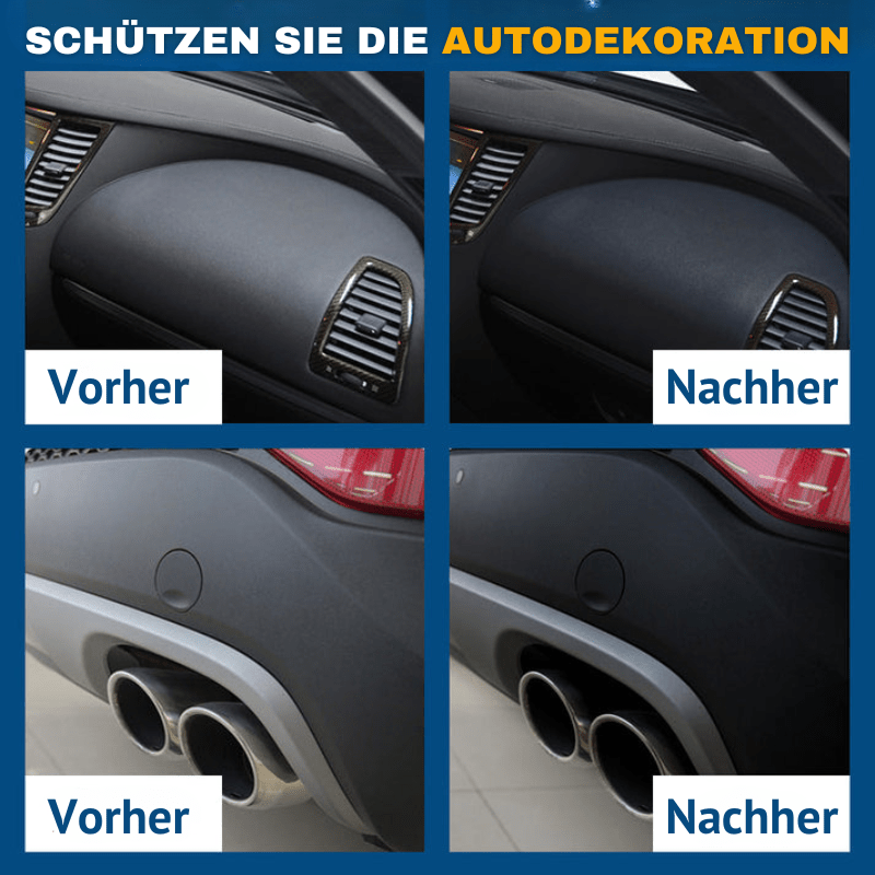 Unser Kunststoff-Restaurator für Autos macht Ihre matten Kunststoffe und Polster nicht nur glänzend, sondern schützt auch die Kunststoffteile und Verkleidungen Ihres neuen Fahrzeugs! Mit der Anwendung unseres Restaurators und Schutzmittels können Sie vorzeitigen Verschleiß und Verblassen durch UV-Strahlen und Straßenschmutz verhindern!