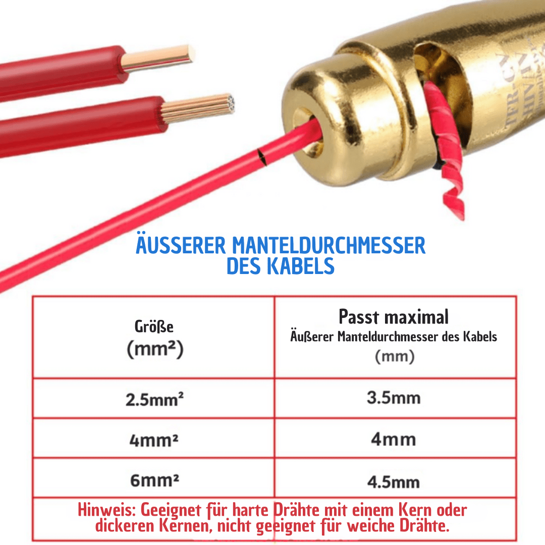 Optimieren Sie Ihre elektrischen Arbeiten mit einem System, das Zeit spart und das Unfallrisiko minimiert. Verbinden und entmanteln Sie Drähte in Sekundenschnelle! 🛠️